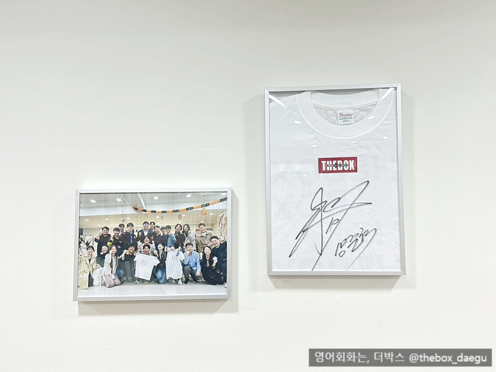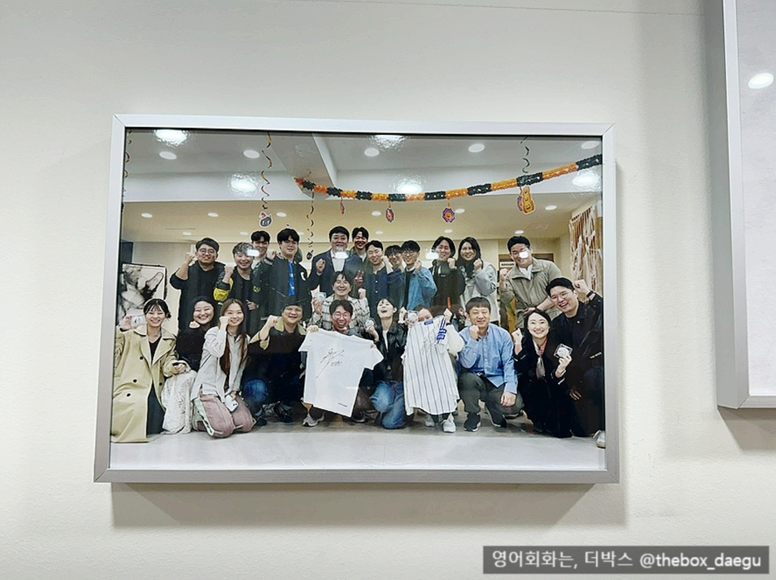 9주년 사진을 게시하면서 저번달에 진행했던 양준혁 선수 토카티브 사진과 싸인 티셔츠 또한 게시 하였답니다. 네 우리 대표님이 굉장한 구기종목 팬이라 농구 야구 축구 등등 더박스 티셔츠도 이렇게 한켠에 걸어두었습니다. 더박스도 전국으로 홈런을 뻥뻥 치는 명품 영어회화 1티어가 되도록 노력하겠습니다.