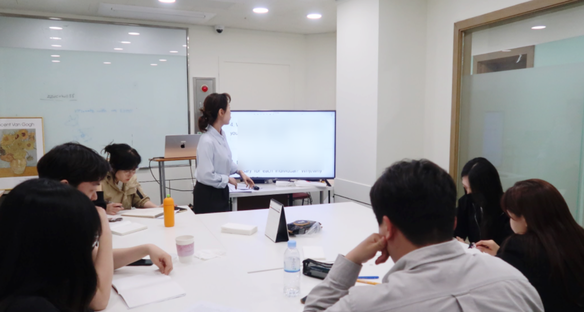 레벨3: 고급어휘와 비즈니스 용어를 배우고 토론을 통해 의견말하기, 반박하기, 결론 말하기 연습이 진행됩니다. (캐쥬얼한 일상 영어회화도 같이 진행)