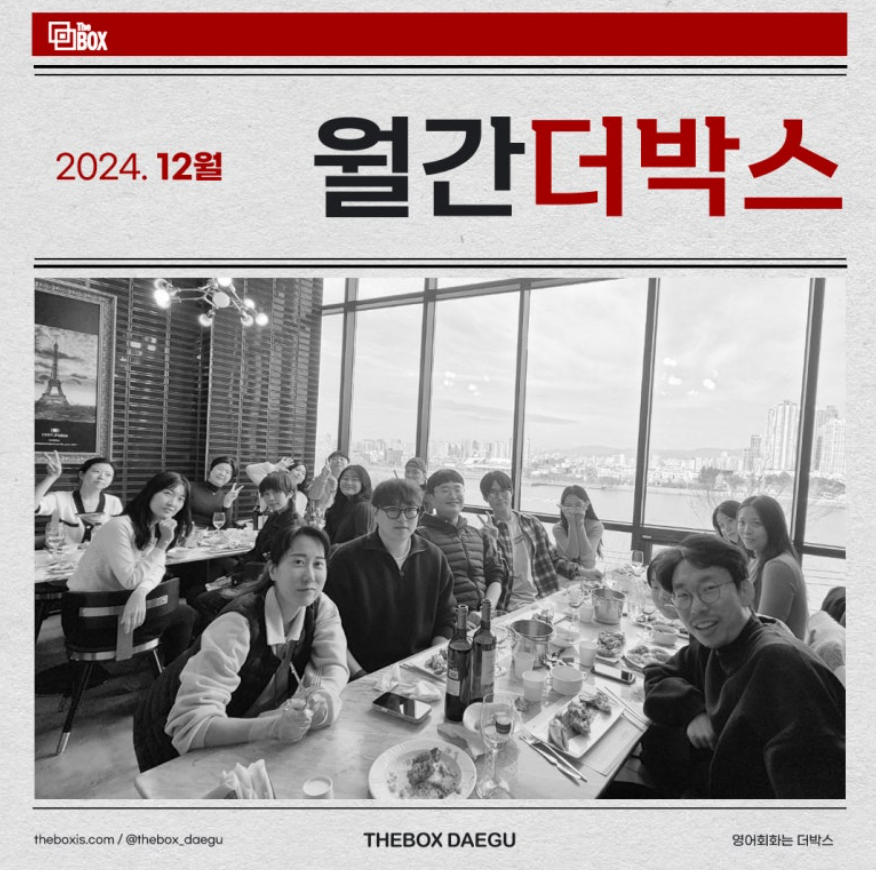| 대구 성인영어회화 이벤트 많았던 11월 월간 더박스 (3) | 2024.12.19 |