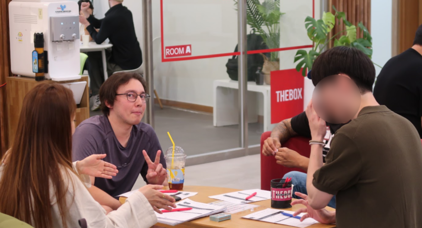 실전에 익숙해지는 감각 그리고 기존 영어실력을 유지하기 위한 노출로 대구영어회화 더박스 원어민회화스터디! 원어민과 소그룹으로 앉아서 충분한 영어대화를 즐길 수 있는 장점까지 가지고 있어요.