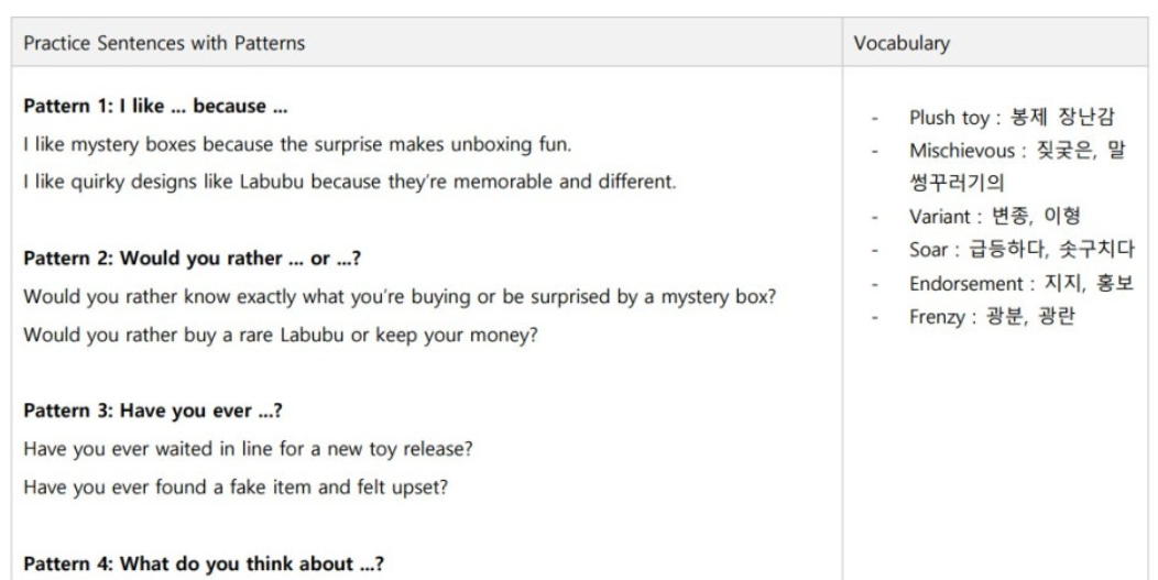 → 대화할 때 당황하지 않고 자연스럽게 꺼낼 수 있어요.