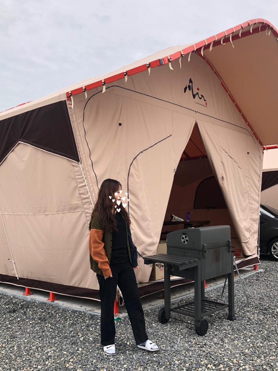요렇게 텐트가 큰데, 저기 안에 앉아 있을 수 있는 자리도 있고, 바베큐를 할 수 있는 그릴도 되게 좋은것 같더라구요. 금액은 모르지만ㅋㅋㅋ 가을날씨에 즐길 수 있는 몇 안되는 액티비티잖아요? 즐길 수 있을 때 즐겨야죠. 날씨도 딱 가디건 입을 날씨로 딱 좋고, 가을가을하게 물도 들어서 너무 예쁘더라구요.