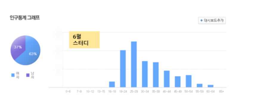 여러분!! 5월과 비교해서 뭔가 달라진 것 같지 않나요?!?! 방학이 점점 가까워져서 20대의 비율이 엄청 증가한 것도 있지만 50대의 비율이 거의 2배로 증가했다는 사실!! 저도 요즘 스터디를 하러 들어갔을 때 50대 이상이신 분들이 참여하고 계신 걸 많이 볼 수 있었거든요!! 이렇게 수치로 보이니까 더 신기하네요ㅎㅎ
