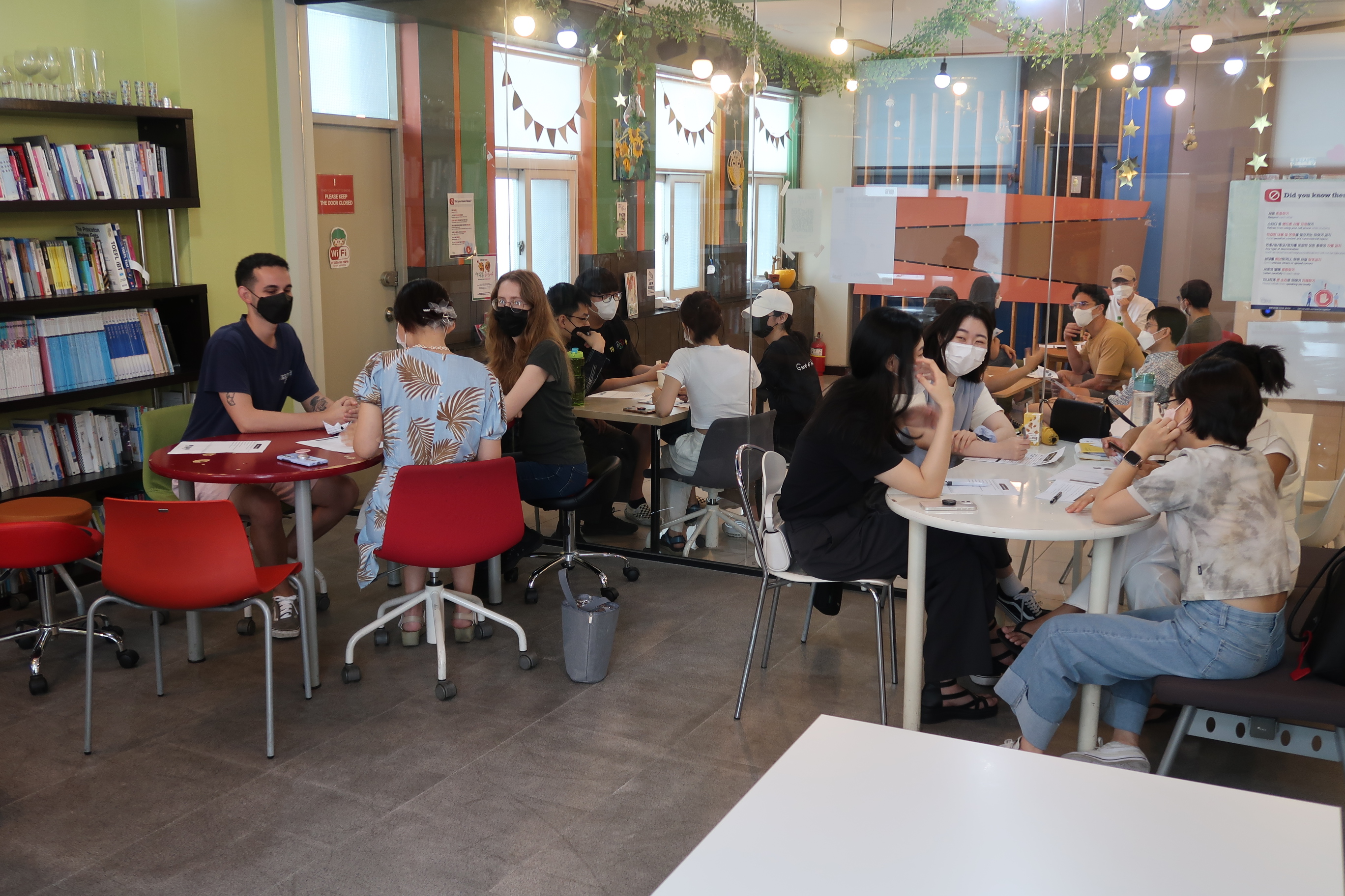 비슷한 영어실력을 가진 친구들과 얘기를 하게 되기 때문에 '문장을 잘못 말하면 어떡하지?' '나만 너무 영어를 못 하는 거 아닌가?' 하는 걱정은 조금 더셔도 괜찮아요! 같이 실력을 키워가는 친구들이니깐 편하게 영어를 사용해보는 자리라고 생각하면 좋으실 거 같아요!