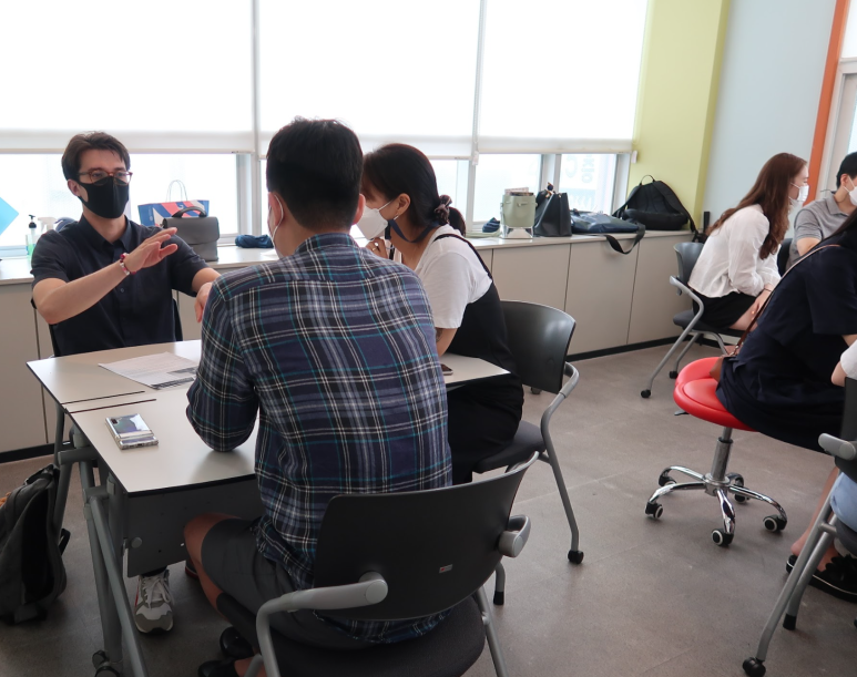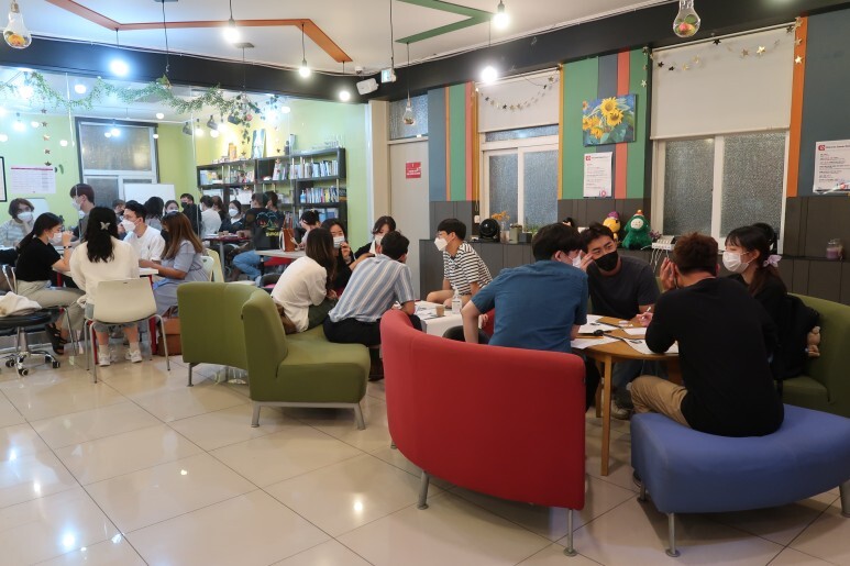 소모임진행되듯, 그룹으로 모여앉아 리얼프리토킹으로 이야기를 하면서 영어회화 공부를 할 수가 있답니당. 연령대도 성인만 가능해서 성인분들만 계세요. 대학생 이상인 분들! 직장인 분들 비중이 제일 많은 것 같아요. 대부분 취미로 오시는 경우가 많더라구요. 저처럼!