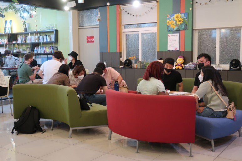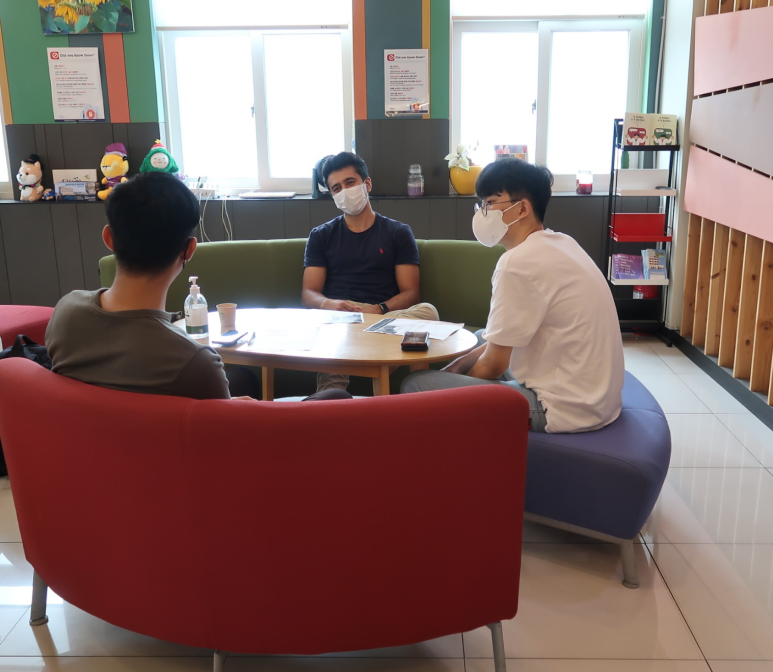 더박스 영어회화 스터디는 그룹으로 모여앉아서 진행이되는데요, 일반 소모임어플에서 볼 수 있는 영어회화모임들과 달리, 여기에는 원어민 친구들이 있답니다. 다양한 나라에서 온 외국인 친구들과 이야기를 나눠볼 수 있다는것. 미국, 영국, 호주 등등 다양한 국가의 악센트를 들어가며 이야기를 나누니 재미있더라구요. 제가 대구살면서 영어로 말해본거 진짜 손에 꼽을 정도인데, 여기에는 오기만하면 1시간 40분동안 영어로만 말을 해야하니까요.