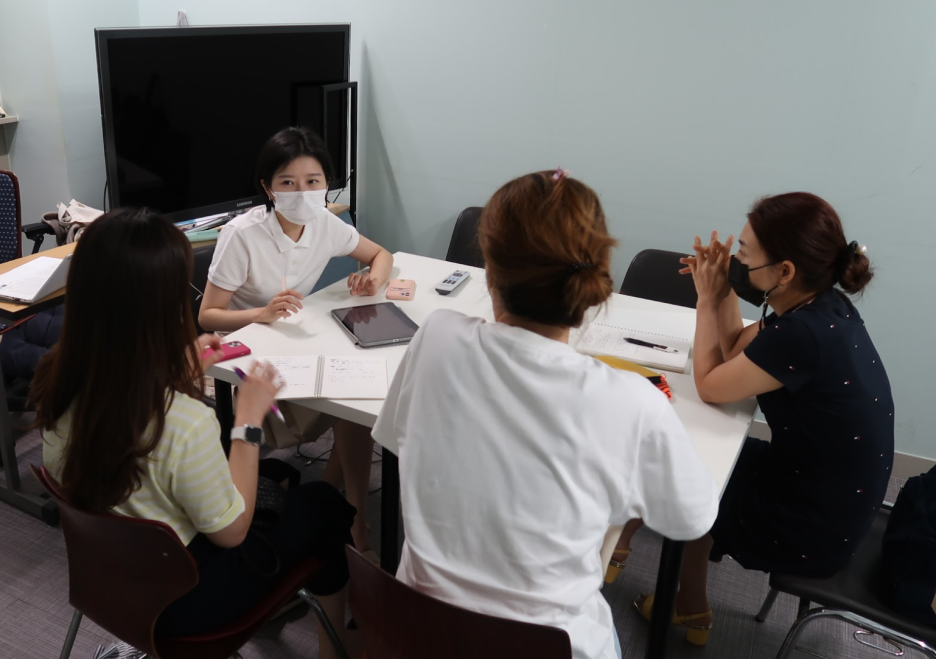그룹으로 수업을 진행하는 이유는 수업시간에 진행되는 프리토킹과