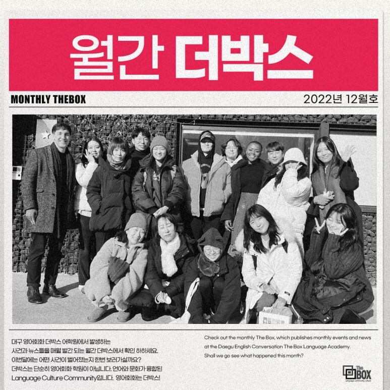 | 영어회화 후기 살짝 곁들인, 대구 월간 더박스 2월호 (1) | 2023.03.14 |