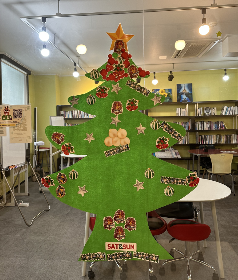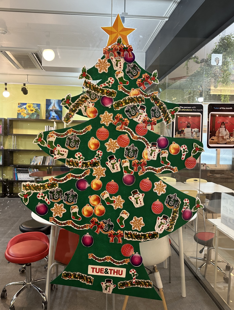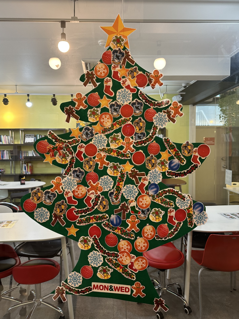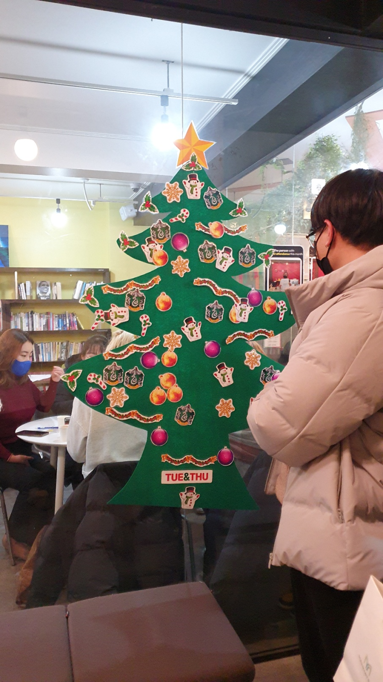 아무래도 월수화목반은 오전/오후 모두 진행되어서 크리스마스 트리가 되게빽빽하네요. 저 오너먼트 준비하면서도 생각보다 오래걸리고 가위질할일이 많아서 당황..