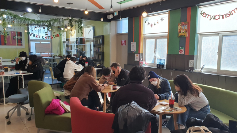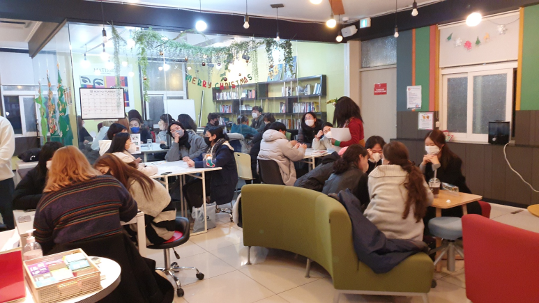 원어민 회화스터디에서는 메리더박스마스 액티비티가 있었는데요. 크리스마스 게임을 하면서 크리스마스와 연관된 단어/문화를 알아보던 시간이었습니다. 저희도 준비하면서 크리스마스 단어와 문화가 되게 생소하다고 생각했습니당. 되게 재미있었던 시간이었어요. 그리고 문제가 되게 어렵던 문제도 많았습니당...