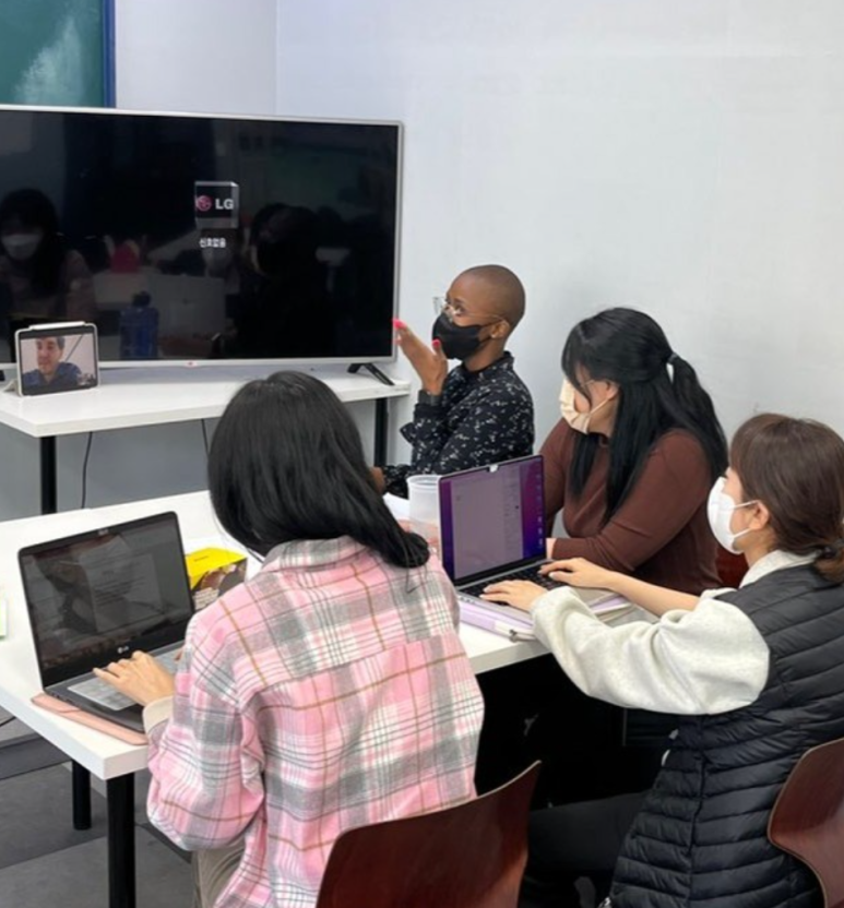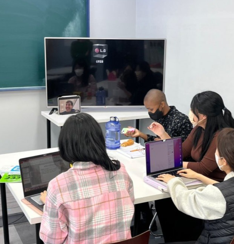 저 작은 화면속 익숙한 사람이 보이시나요? 바로 랜디쌤입니당! 더박스에서 계시다가 현재는 대학교 교수님으로 가신 랜디쌤이에용! 지금은 순천에 계시지만, 꾸준히 더박스와 함께하고 계신답니다! 오늘은 아카데미 선생님들의 RND 미팅이 있었던 날이었어요. 더박스의 모든 수업은 영어회화 수업이기에, 책으로 진도나가듯 획일화되게 수업을 할 수가 없답니다 (그래서 더박스에는 교재가 없다는 것.. )
