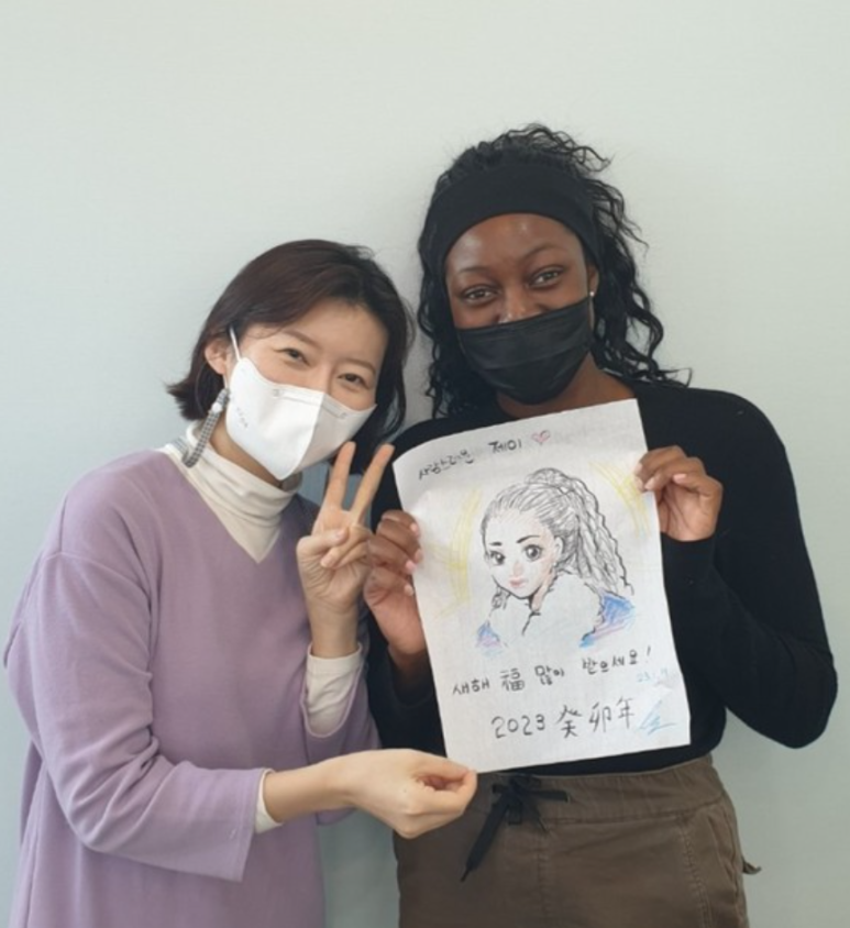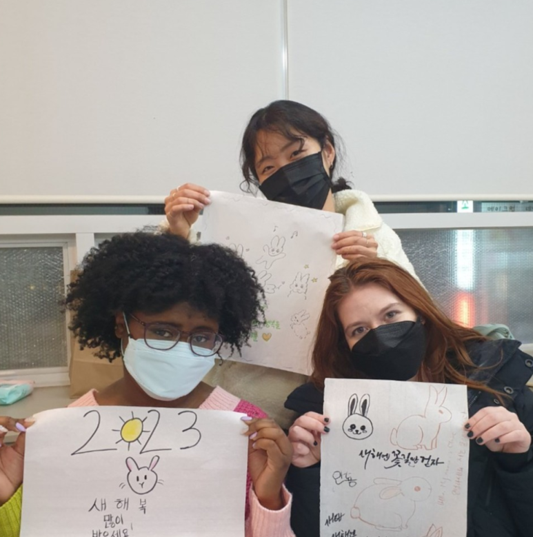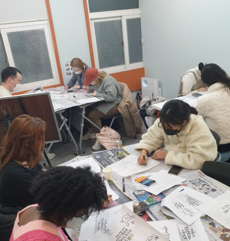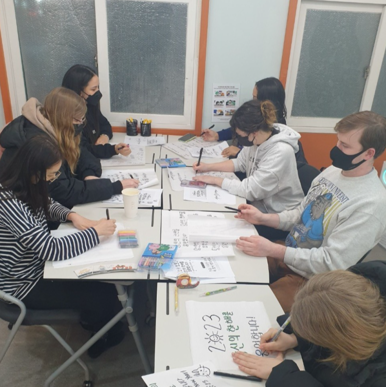 이번 설날 더박스에서는 다양한 나라의 친구들과 새해를 맞아, 주변 사람들에게 덕담을 적어보는 시간을 가졌답니다. 우리나라 한지에다가 붓펜으로 글을써보는 거였는데, 단순히 새해복 많이 받으세요 말고도 다양한 새해인사를 건네볼 수 있었던 시간이었습니다. 친구들 한글도 한자도 너무 잘쓰지 않았나요?! 그림도 너무 잘그리더라구용..