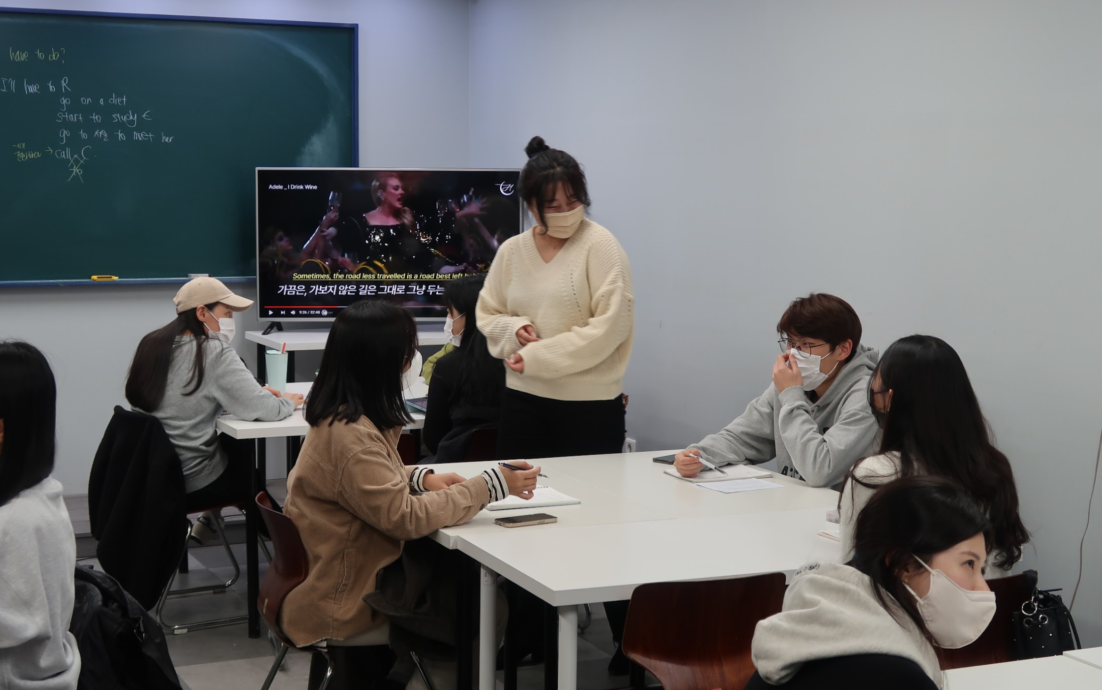 영어회화 공부는 왜 어려울까요? 우선 영어회화는 외워서 되는 공부가 아니다보니, 실제로 입밖으로 내밷는 연습이 부족해요! 하지만 오프라인 영어회화수업은 수업중에 프리토킹도 진행되고, 배웠던 패턴들을 실제로 말해보는 시간도 충분히 이루어지기 때문에 영어로 말하는 것부터 익숙해질 수 있도록 진행됩니다.
